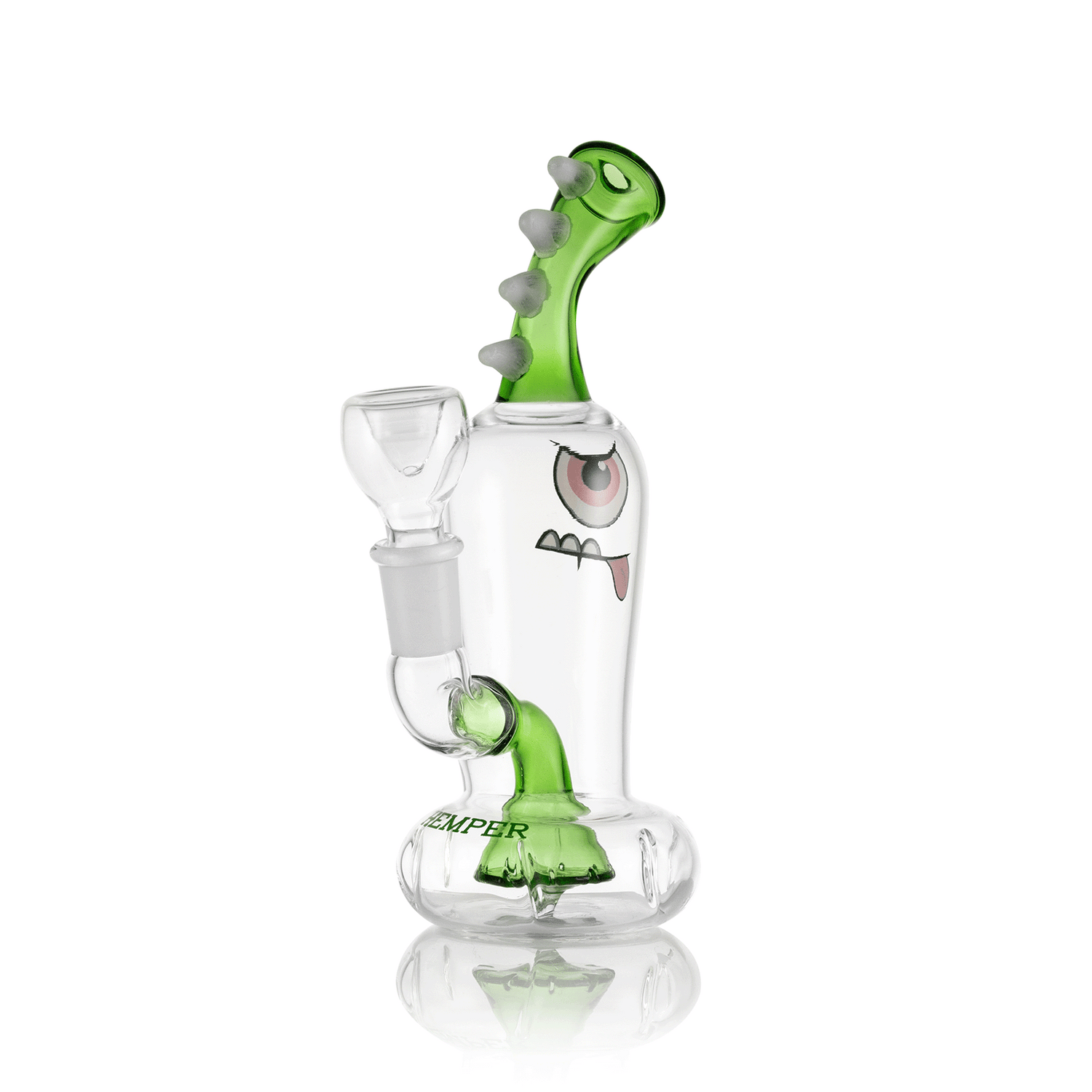 The Hemper Candy Monster Mini Bong is here to raid your stash and your candy bowl! Standing 6” inches tall, this Halloween-themed glass bong brings a playful twist to spooky season with its monster face decals, spikey horn mouthpiece, and glow-in-the-dark accents that come alive once the lights go out.